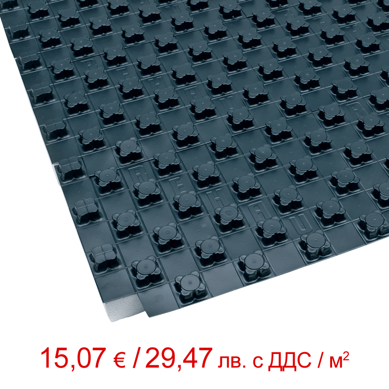 Подложка тип релефна плоча Rehua VARIONOVA 30-2 с изолация 30 mm за полагане на подово отопление / охлаждане. Може да се ползва с тръби от 14 до 17 мм външен диаметър. Размер на плочата: 1.4м х 0.8м Цената е за един цял кашон (11,2 м2).