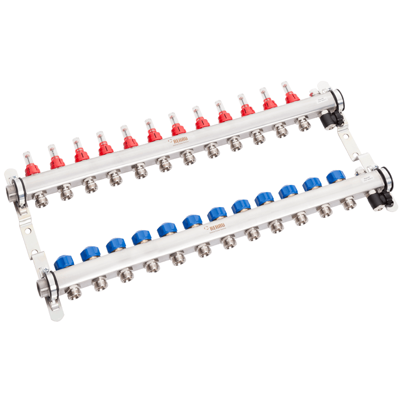 Стоманен колектор REHAU HKV-D12 AG за 12 кръга на отопление. За оптимален контрол и комфорт.